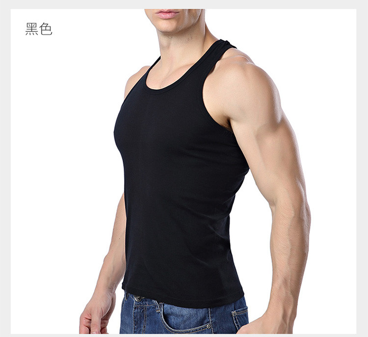男士純色吸汗運動純棉羅紋圓領背心