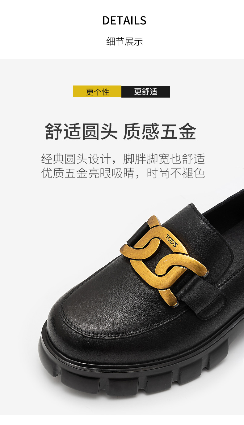 浪莎馬銜扣樂福鞋女英倫2021黑色真皮粗跟松糕一腳蹬厚底中跟單鞋