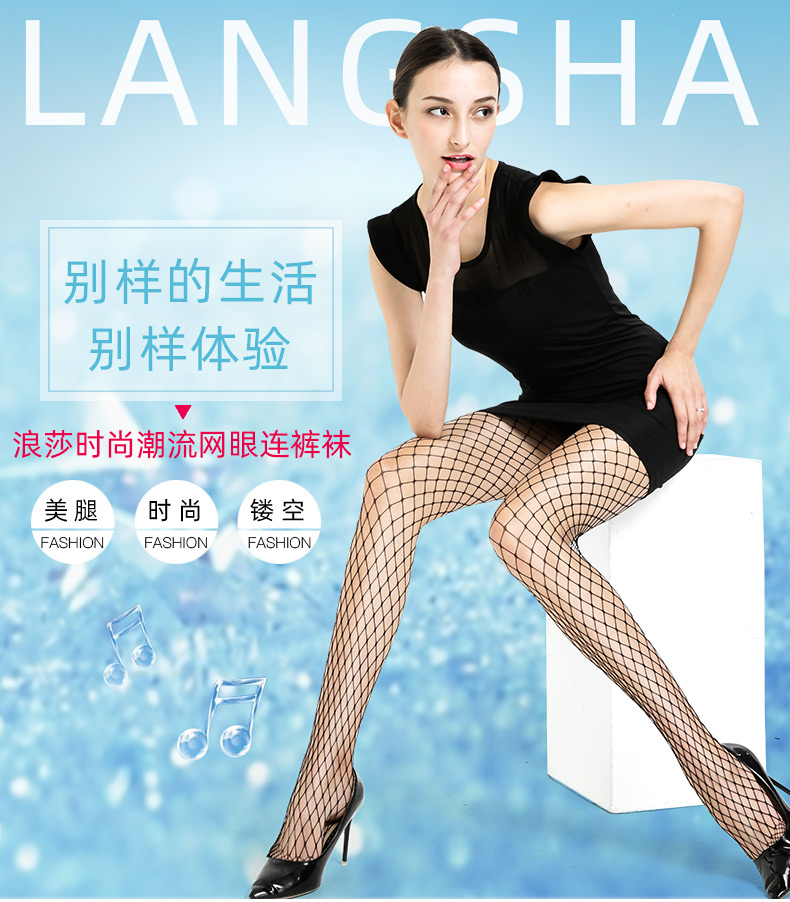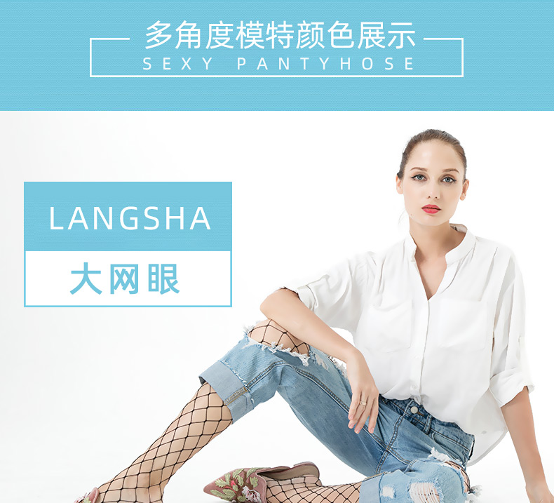 浪莎絲襪春夏超薄性感黑絲襪子女 搭配破洞牛仔褲漁網(wǎng)襪連褲襪