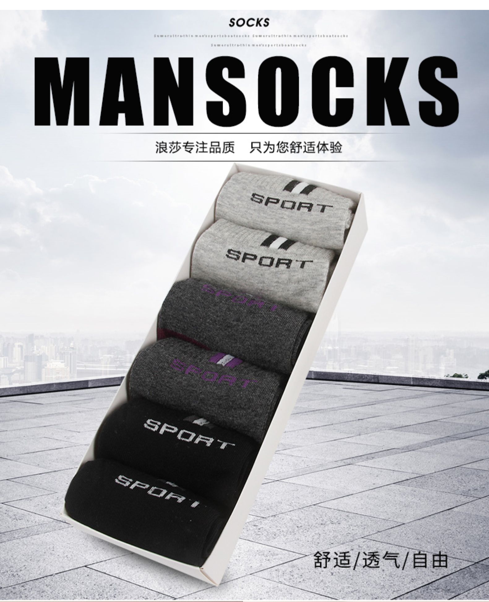 浪莎襪子男士純棉中筒襪秋季薄款吸汗運動籃球全棉春秋透氣短襪潮