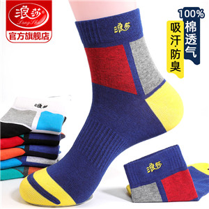 浪莎襪子男士純棉中筒襪秋季薄款吸汗運動籃球全棉春秋透氣短襪潮